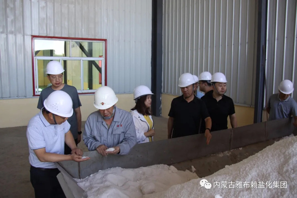 集团公司党委委员、工会主席张菊萍,精盐分厂党支部书记李文德、采盐分厂党支部书记王永泽向调研组一行介绍了公司基层党建工作开展情况,“最强党支部”、“四强四优”创建工作推进情况,重点介绍了“二二一”党支部工作法、“党建+”工程实施情况,并陪同参观了精盐分厂刚刚改造完成的食用盐自动化生产线,介绍了技改项目相关情况,同时陪同调研组深入盐湖再生盐、原生盐生产作业点进行参观,就湖盐生产工艺及生产情况作了介绍。