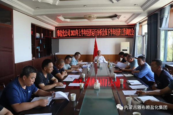 816日,雅盐化集团公司召开2021年上半年经济运行分析会及下半年经济工作调度会, 总结公司上半年经济运行情况,分析存在的问题,安排部署下半年重点工作任务,为年度目标的实现奠定基础。集团公司党委委员、中层管理人员参加会议。集团公司党委书记、董事长孙刚德主持会议。